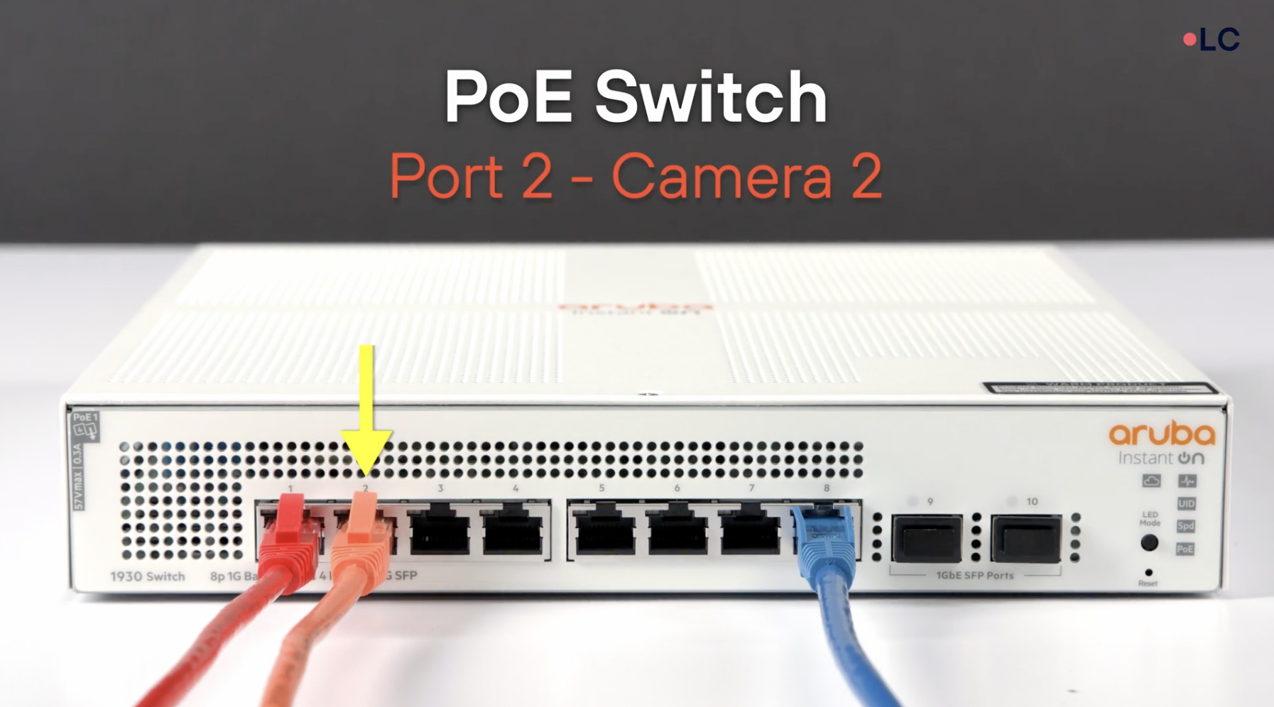 Step 4: Connect port 1 to the back of "Camera 1". See below for an example ethernet port on the camera. If you have more cameras, continue this process for each camera.