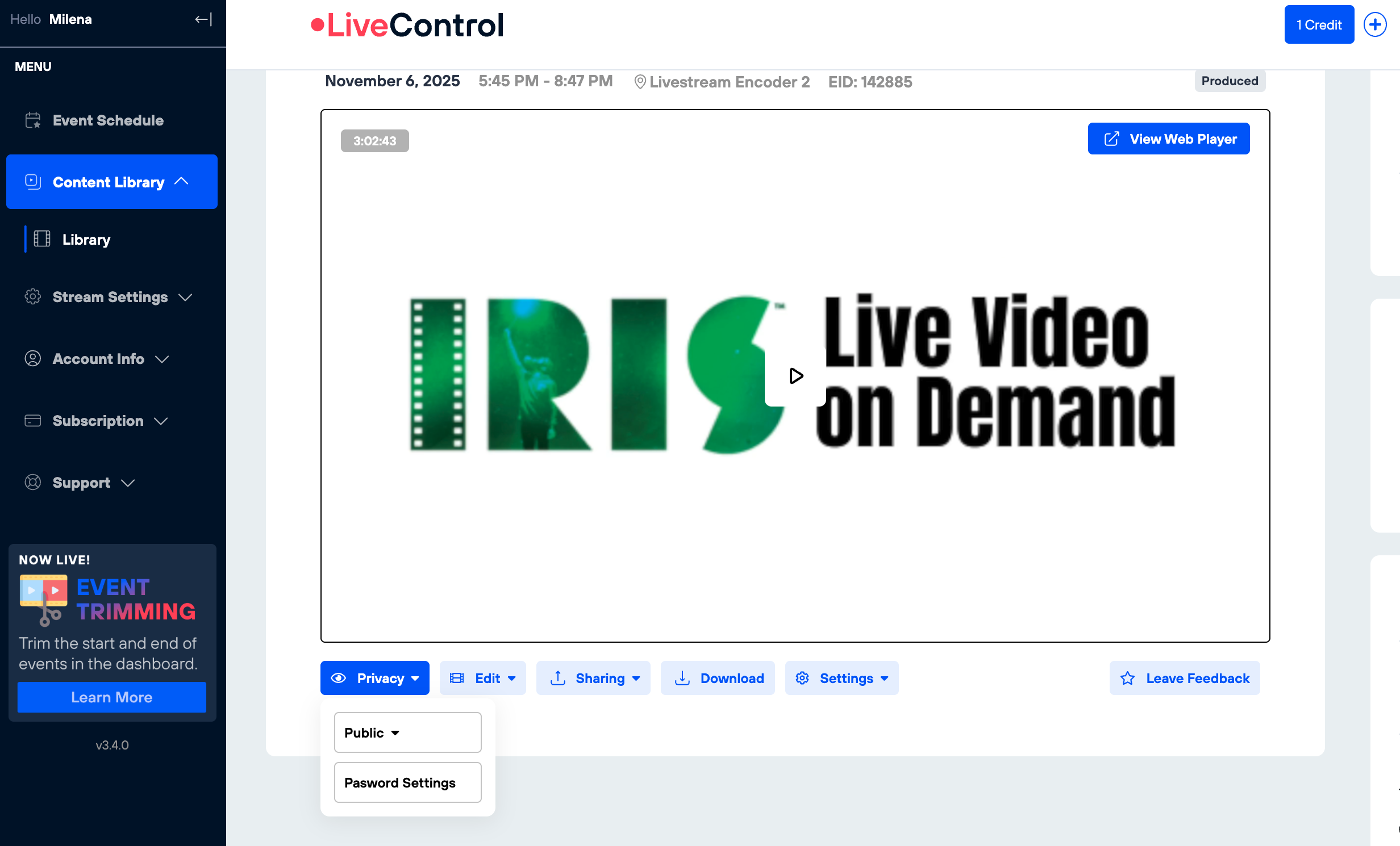You may edit past events via your Content Library. Hide a stream from your public archive, change the name and description, or enable password protection for events after they have been streamed.