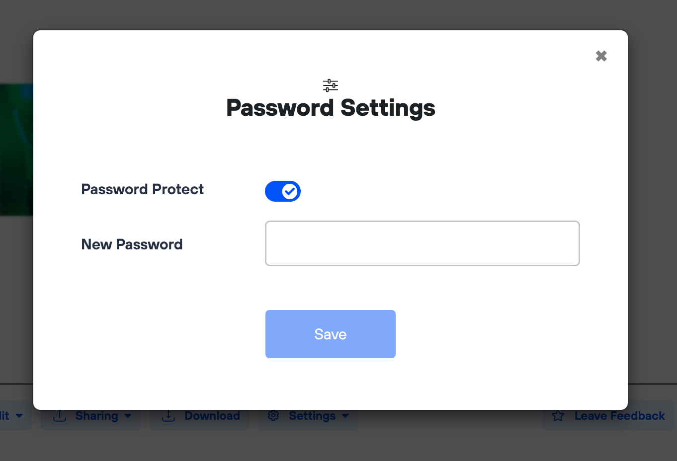 3. Toggle the Password on or off as needed